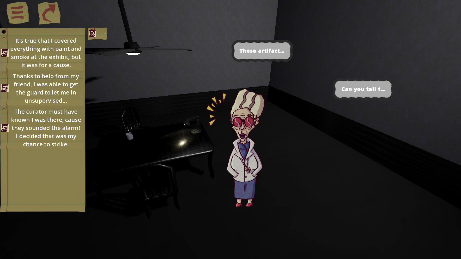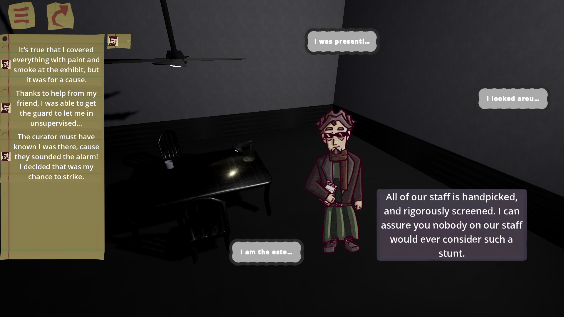This is a cool concept - I've been enjoying the mechanic of using statements to disprove untruths and the character art style.